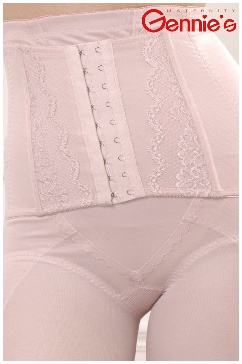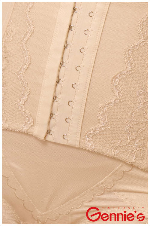 前片採用不具伸縮性質料,能強力緊縮腹部,有效消除腹部脂肪。腰部之前後加穿螺旋狀中性鋼條,可強力支撐腰、背部,對長時間站或坐的人,兼有糾正姿勢的功能,整體剪裁可加強縮腹提臀的效果,並能修飾身材、展現魅力曲線。