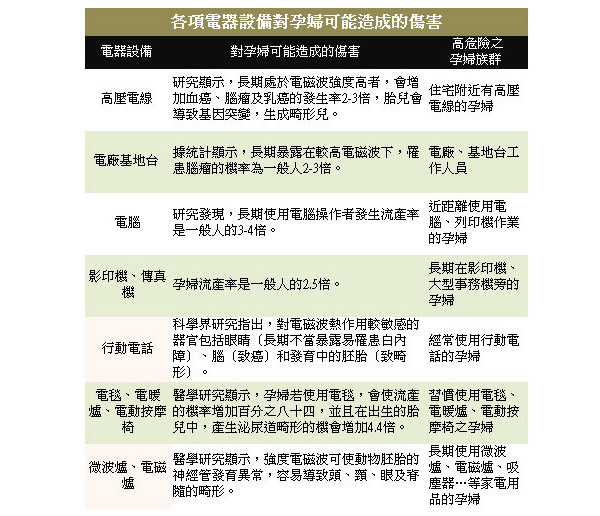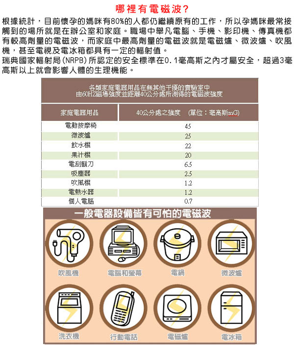 雖然電磁波對孕婦及胎兒會產生不良影響,但我們週遭的生活及工作環境無法避開,因此防護工作就更顯重要。